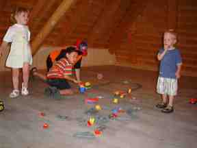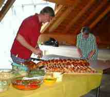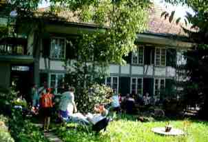 Rund 30 Familienmitglieder allen alters trafen sich am Sonntag, 13. Juli 2000 zum Ziegler-Sommertreffen im Dorfmuseum Konolfingen im schönen Emmental. Das Museum wird vom ehemaligen Gasthaus Bären beherrbergt. Bei herrlichem Wetter liess es sich unter dem weitausladenden Dach des altehrwürdigen Hauses herrlich plaudern. Im Dachstock liess sich die Gesellschaft heissen Schinken und Salate schmecken. Dazu servierten die Gastgeber, Eri und Chrigel riesige Berner Züpfe, von der es traditionellerweise an Schluss noch mitzunehmen gab. Im kulturellen Teil des Programms führte Eri durch ihre Ausstellung von Puppenstuben - sie ist übrigens noch bis im November zu sehen, für alle, die die Gelegenheit verpasst haben. Anfragen betreffs Öffnungszeiten richte man am besten direkt an Eri. Die Bilder sprechen für sich, es bleibt noch, Eri
