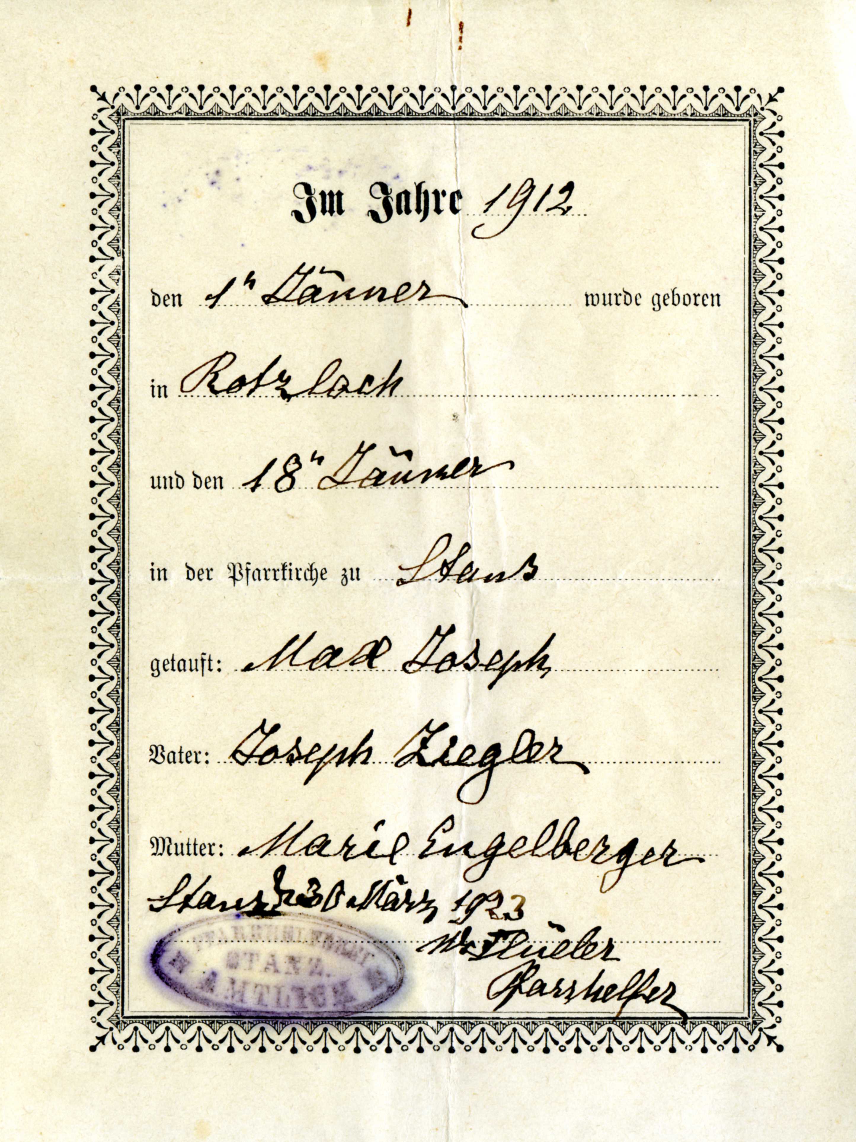 Familie Ziegler-Engelberger Bilderchronik 1889 - 1989